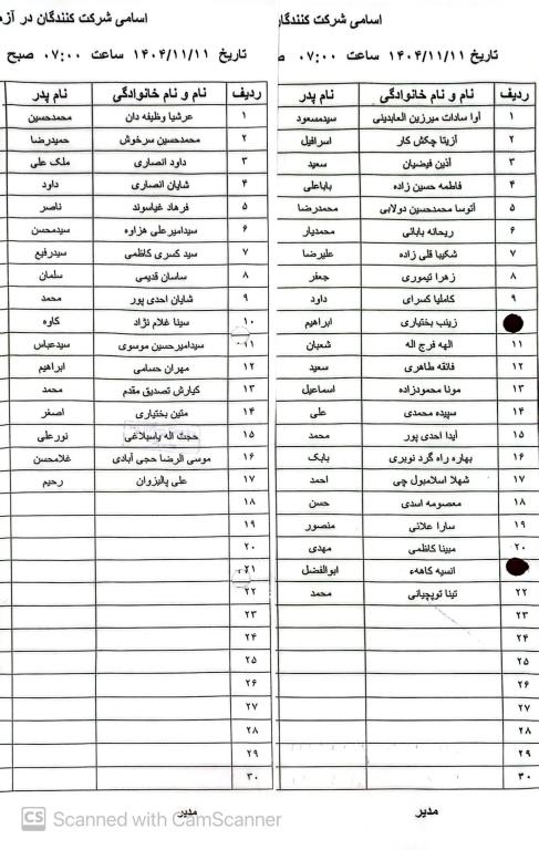 از خانم ها و آقایان درج شده در لیست زیر دعوت میشود