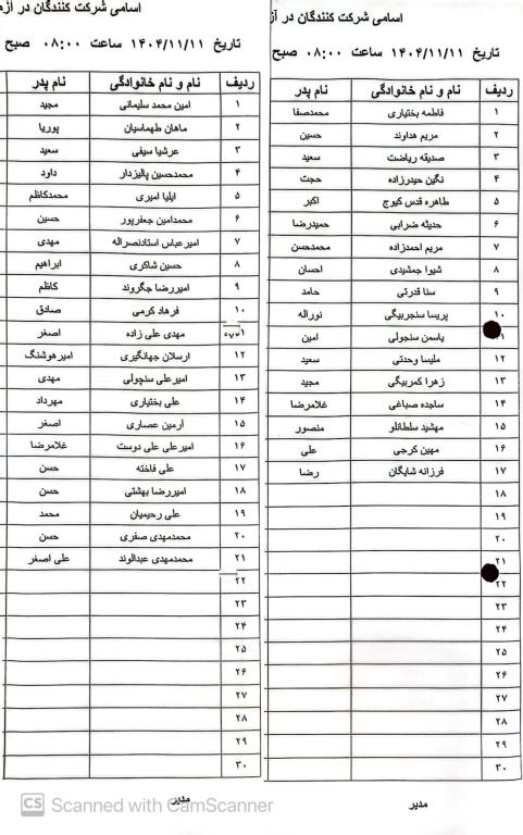 راس ساعت مقرر در لیست جهت شرکت در آزمون آیین نامه به محل اخذ آزمون واقع در فاز3 بلوار جانبازان جنوبی خیابان اندیشمند پارک ترافیک مراجعه نمایند. (لوکیشن در کانال تلگرام)