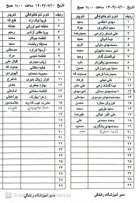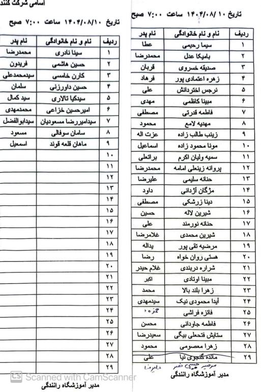لیست شرکت کنندگان آزمون آیین نامه مورخ ۱۴۰۴.۰۸.۱۰